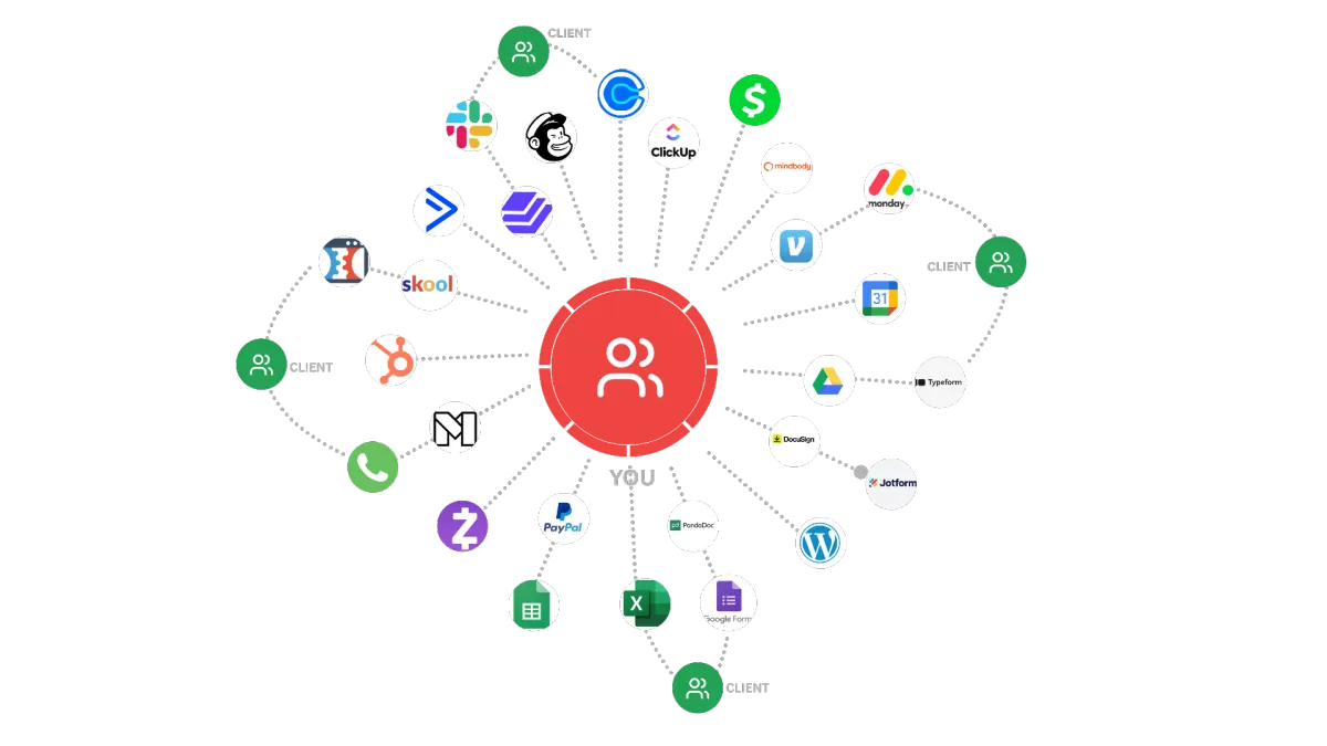 Venmo, Zelle, and Cash App for payments. Google Docs for programs and tracking clients. Calendly to book clients. Typeform, Google Forms, Jotform for applications. Wix or Shopify for websites. None of them connected, none of them automated. All of them costing you time and money.